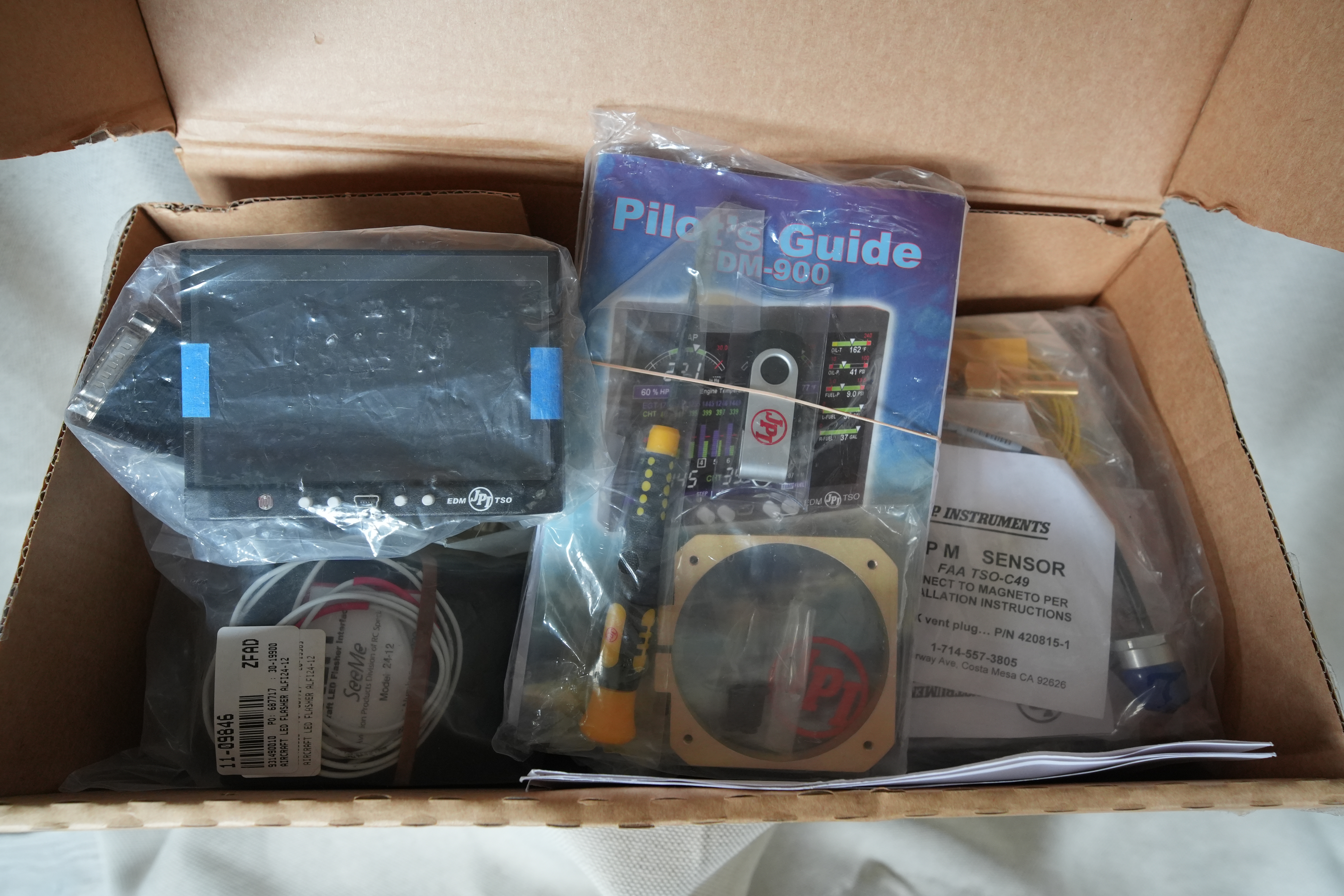 For sale is a brand new J.P. Instruments (JPI) EDM-900. This unit is a certified primary replacement for many of your aircraft’s old analog engine gauges, allowing you to remove them and clean up your panel with a single, high-tech display.